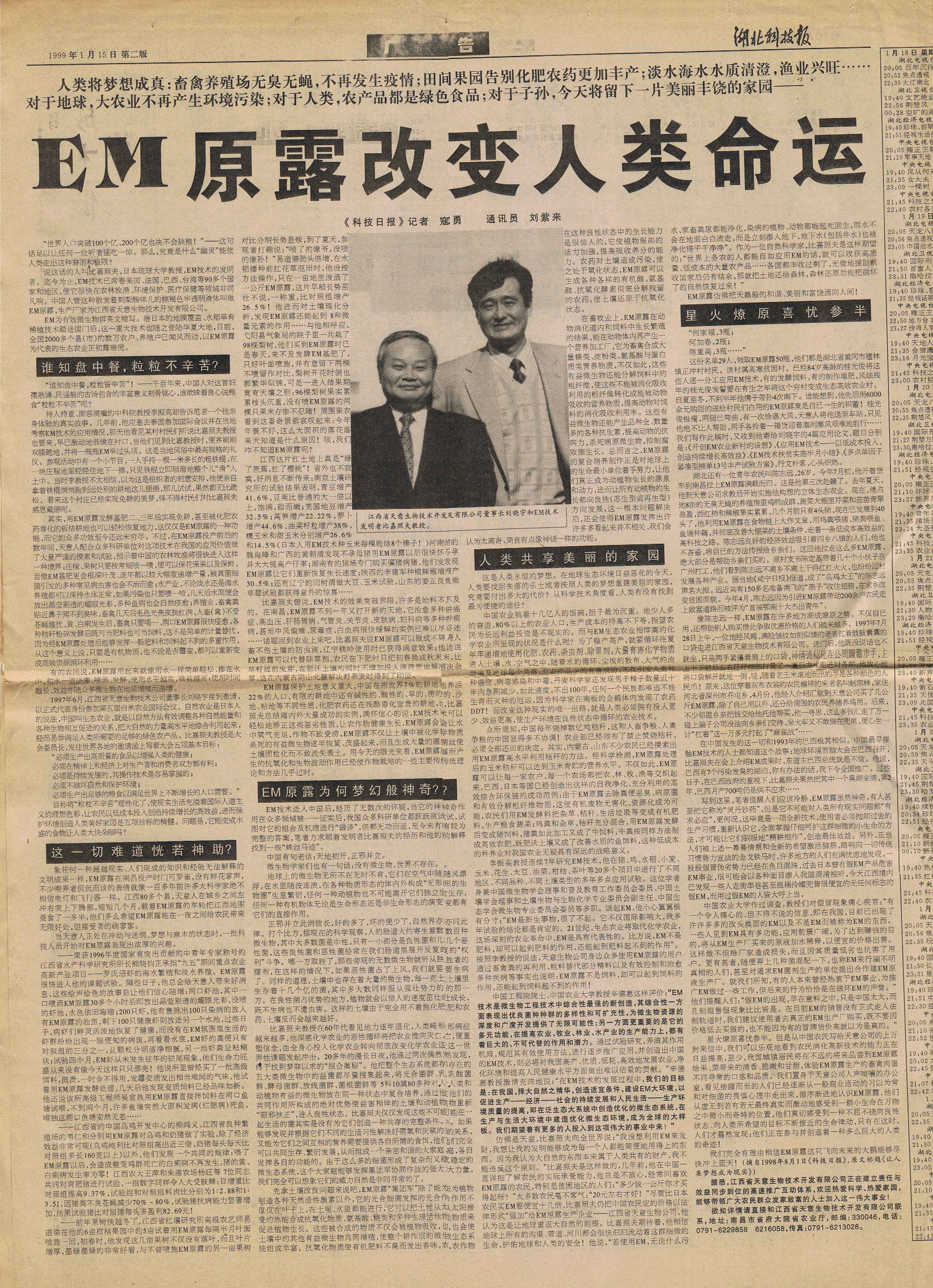 十年之“賭” 《十年之賭》,這是一篇寫于20年前的文章,曾發表于《中國青年》、《科技日報》、《中國工商》等報刊。從這篇文章中,您可以看到一位創業者的艱辛與困苦,同時了解EM技術引進中國的來龍去脈。